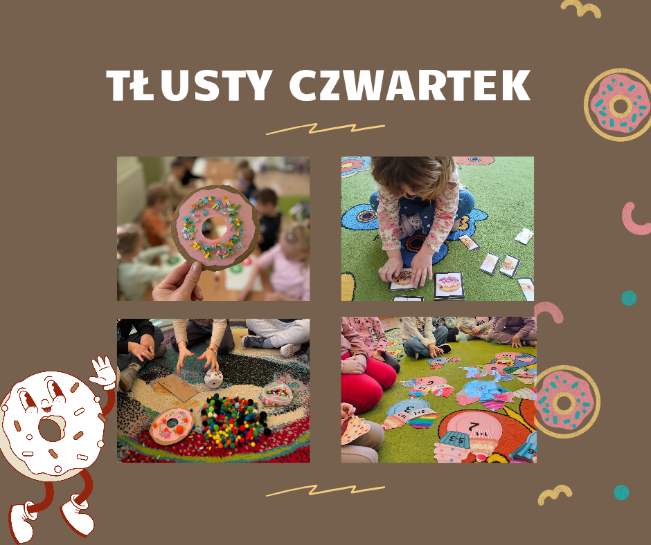 Tłusty Czwartek to jeden z najsłodszych dni w roku — i u nas nie mogło zabraknąć radosnego świętowania! Dzieci uczestniczyły w tematycznych zabawach i aktywnościach związanych z pączkami i słodkościami. Były gry, układanki, zadania edukacyjne oraz kreatywne prace plastyczne inspirowane tym wyjątkowym dniem.